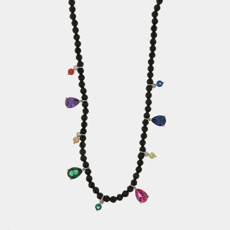 Collana in Argento 925 con pietre naturali e zirconi multicolor pendenti