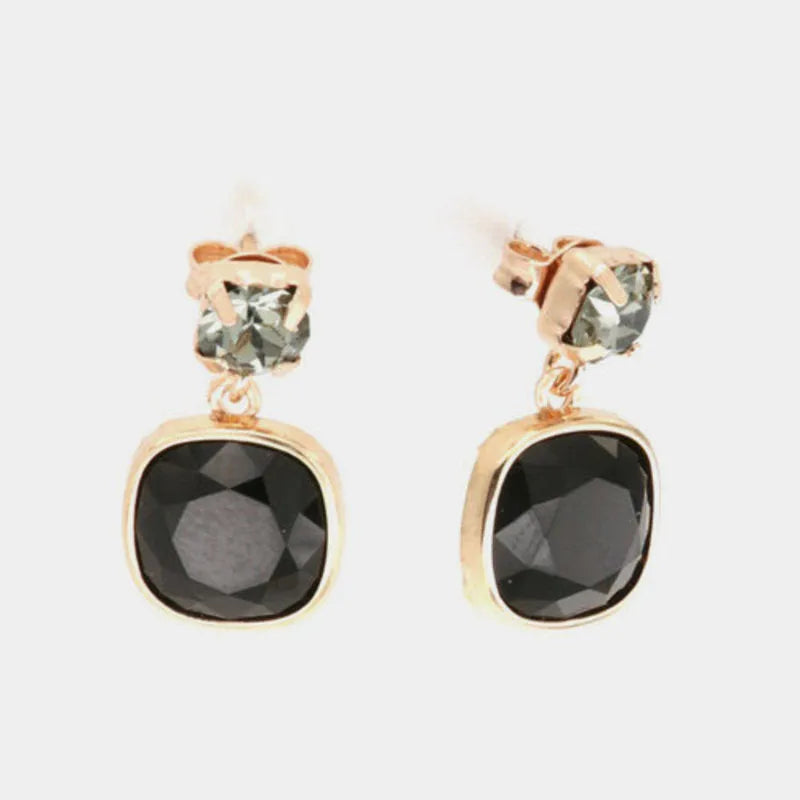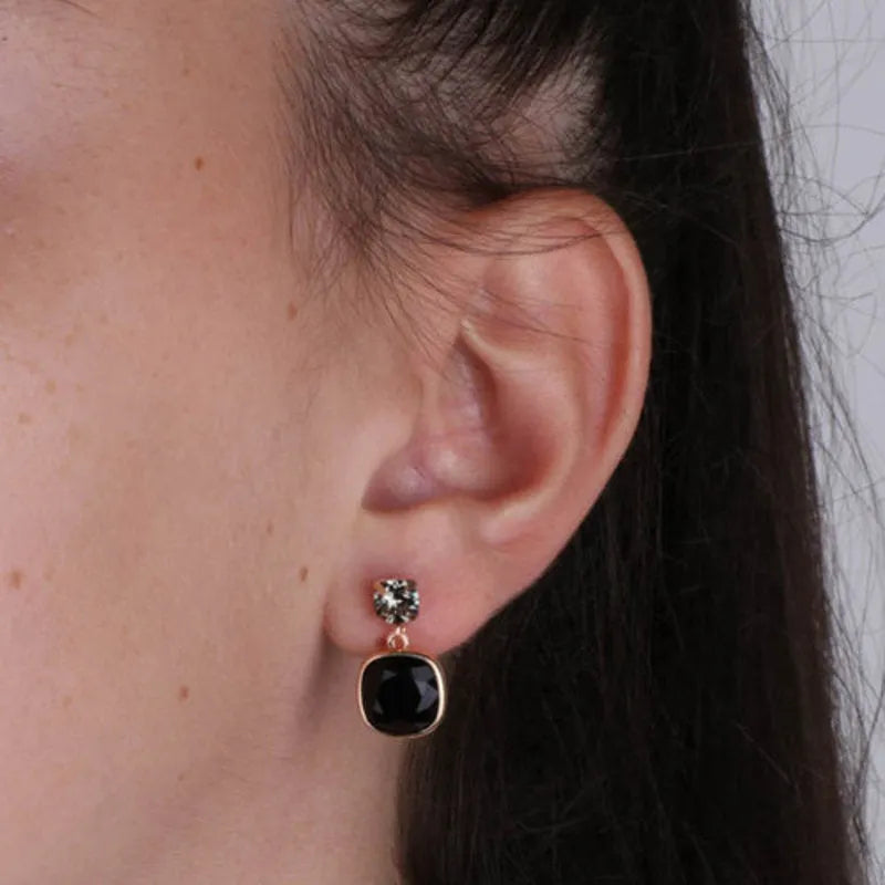 Orecchini in Argento 925 doppio punto luce quadrato con cristalli fumè