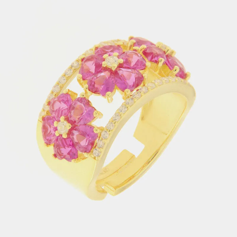 Anello in Argento 925 con fiori di cristalli rosa e zirconi