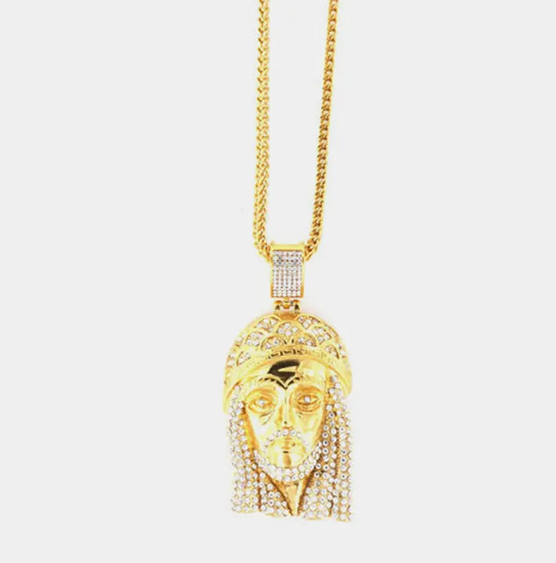 Collar de Acero con colgante religioso que representa el rostro de Jesús