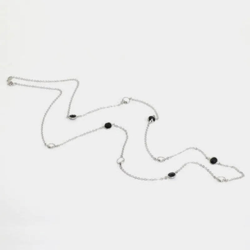 Collana in Argento 925 catena lunga con punti luce sparsi di cristalli neri