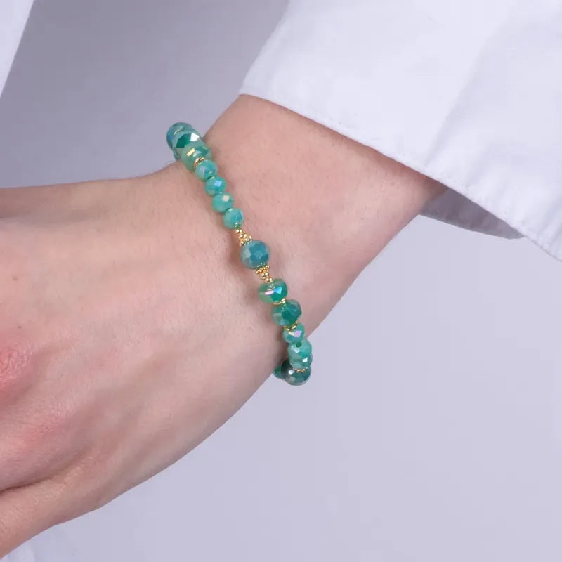 Pulsera de metal con esferas verdes