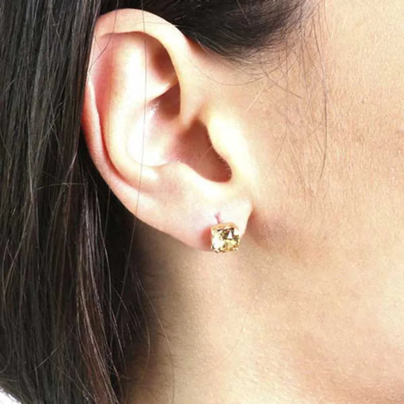Orecchini in Argento 925 punto luce a lobo con cristallo ambra