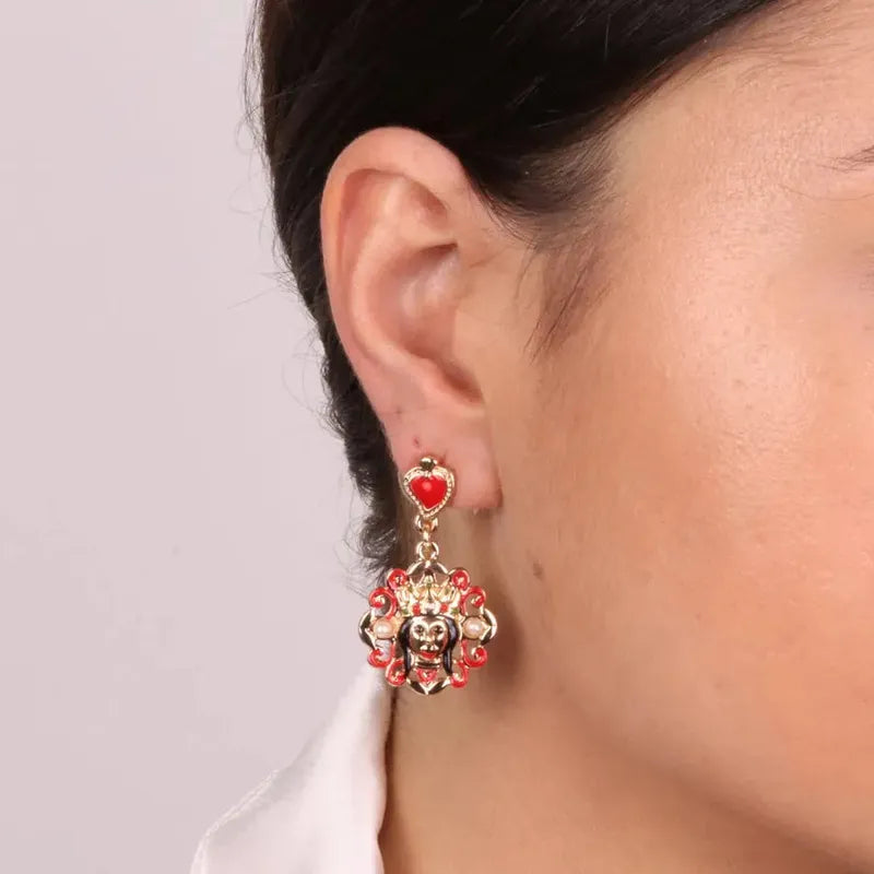 Orecchini in Metallo con cuore sacro a lobo e madonna pendente