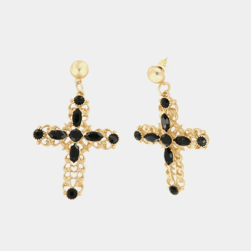 Pendientes de metal con símbolo de cruz adornados con esmalte negro