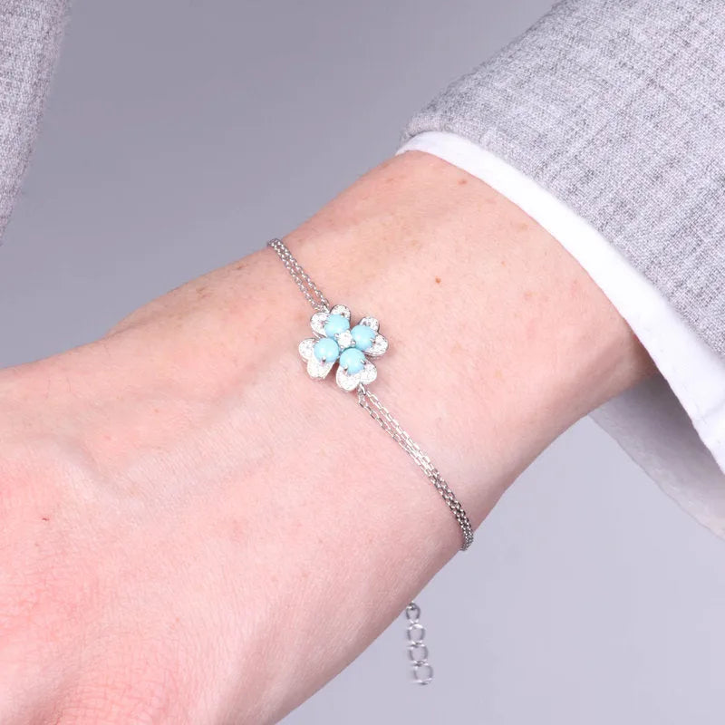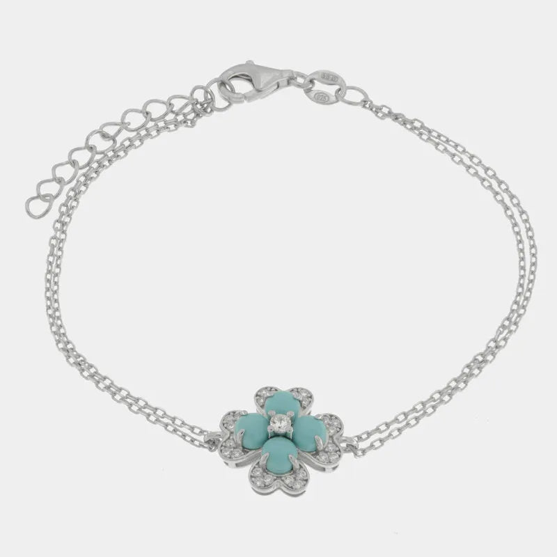 Bracciale in Argento 925 fiore turchese multifilo con zirconi