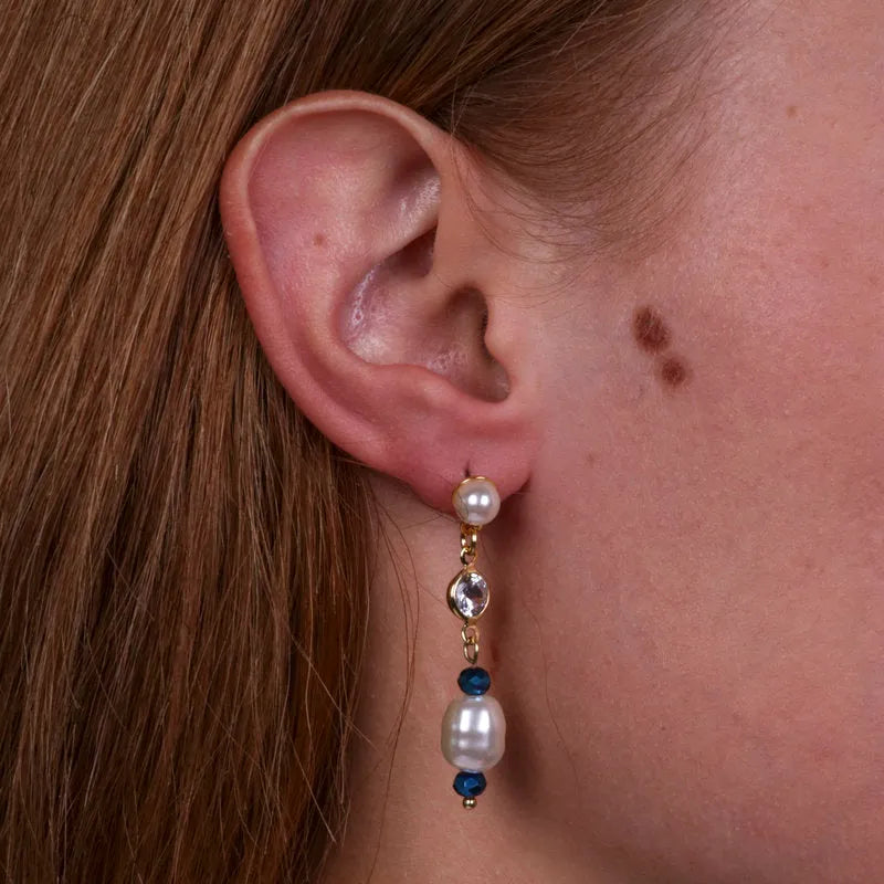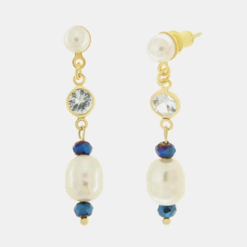 Orecchini in Metallo con perle allungate bianche e corallini blu