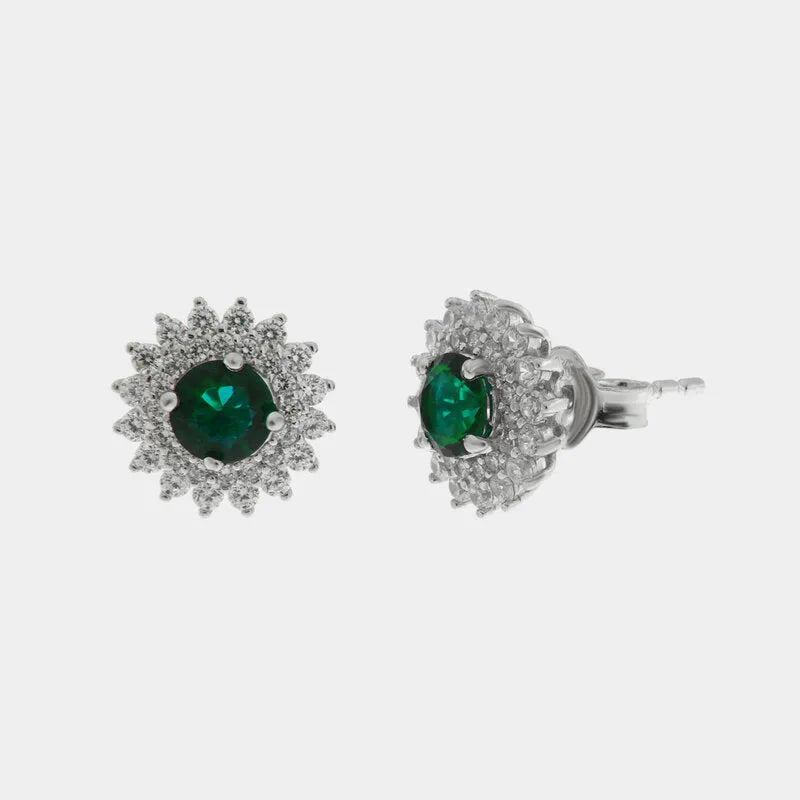 Orecchini in Argento 925 a lobo zirconato con punto luce verde