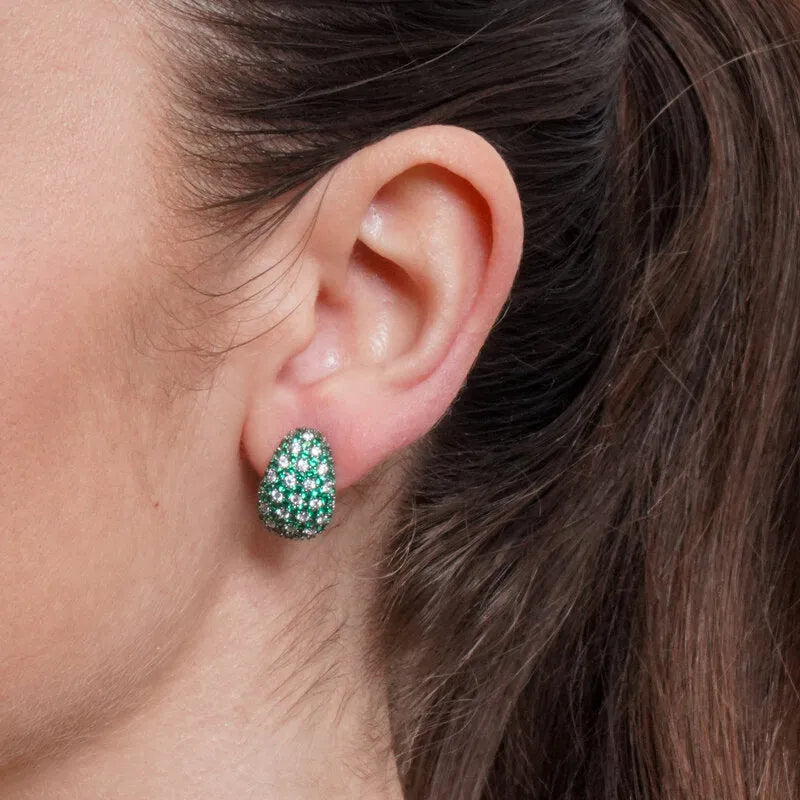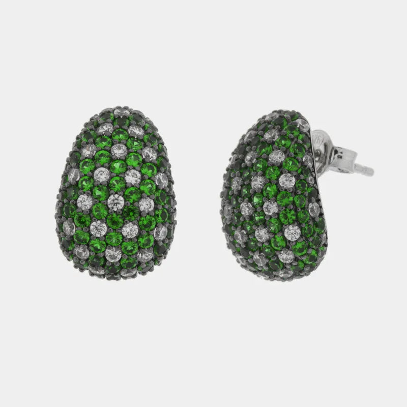 Orecchini in Argento 925 bombato con pave' verdi