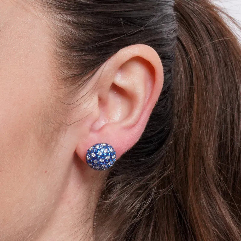 Orecchini in Argento 925 cerchio bombato con pave' blu