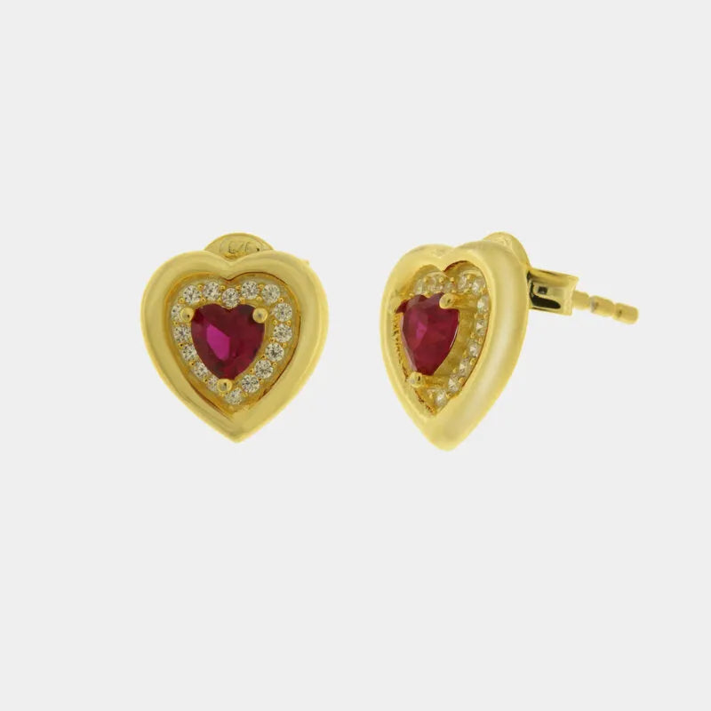 Orecchini in Argento 925 cuore a lobo con punto luce rosso