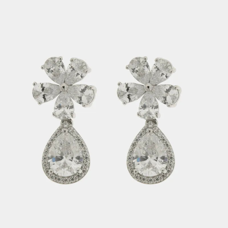 Orecchini in Argento 925 fiore zirconato con goccia pendente