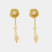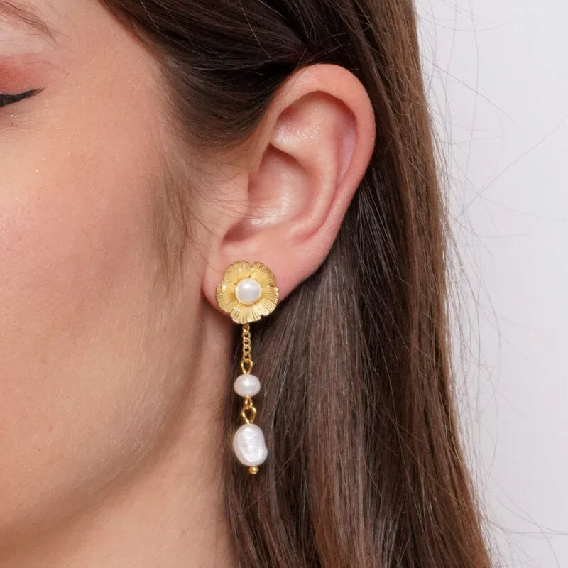 Orecchini in Acciaio fiore con perle pendenti