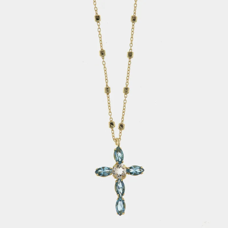 Collana in Argento 925 maglia impreziosita da cristalli e ciondolo a forma di croce con cristalli