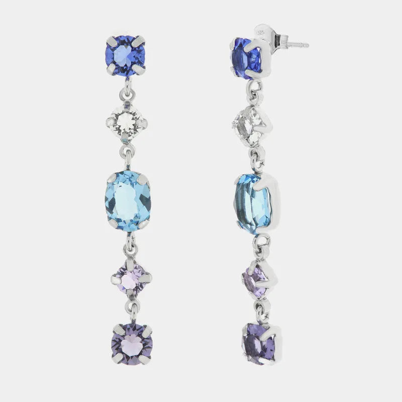 Orecchini in Argento 925 con cristalli azzurri e lilla pendenti