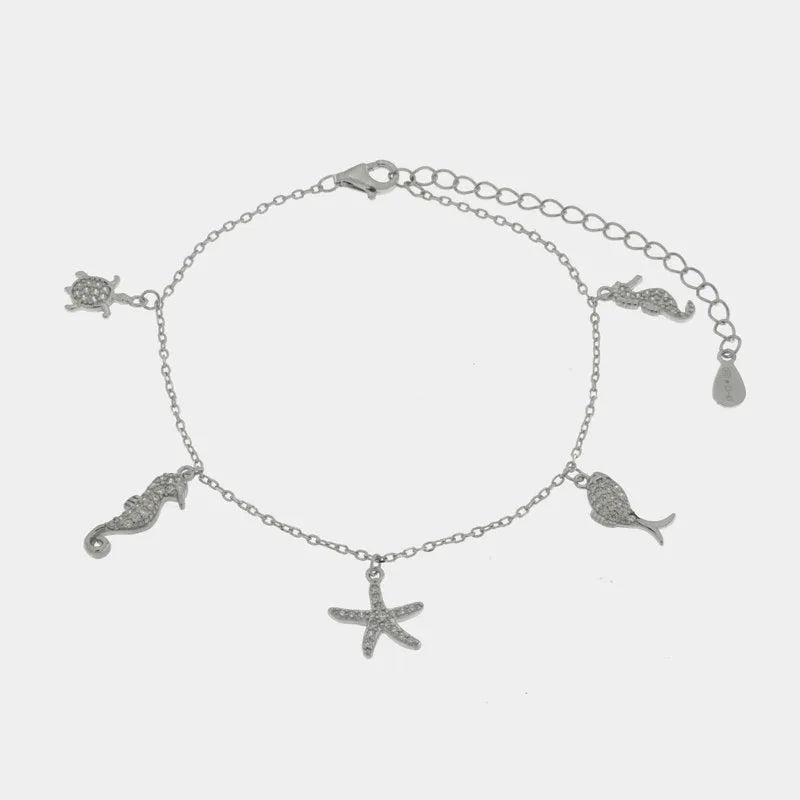 Bracciale in Argento 925 con stella marina, cavalluccio, pesciolino, tartaruga