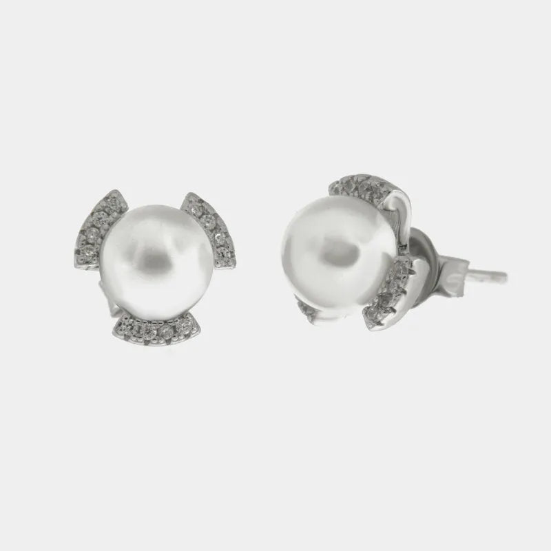 Orecchini in Argento 925 con perla e zirconi a lobo