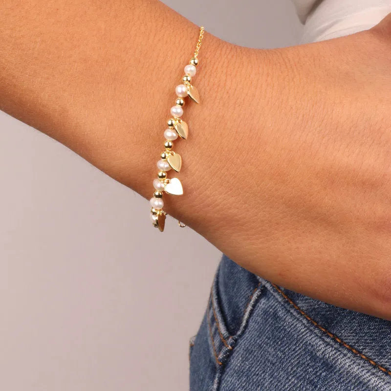 Bracciale in Argento 925 con perline alternate da cuori pendenti