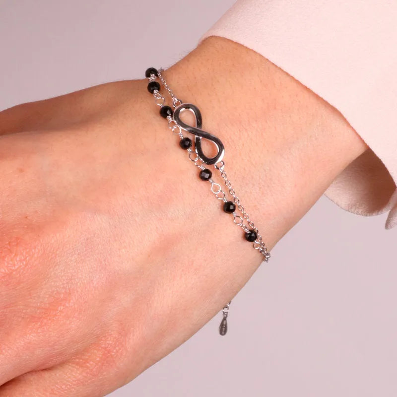 Bracciale in Argento 925 con simbolo infinito e zirconi neri