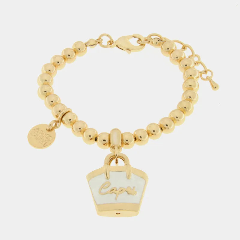 Bracciale in Metallo con borsa bianca scritta capri