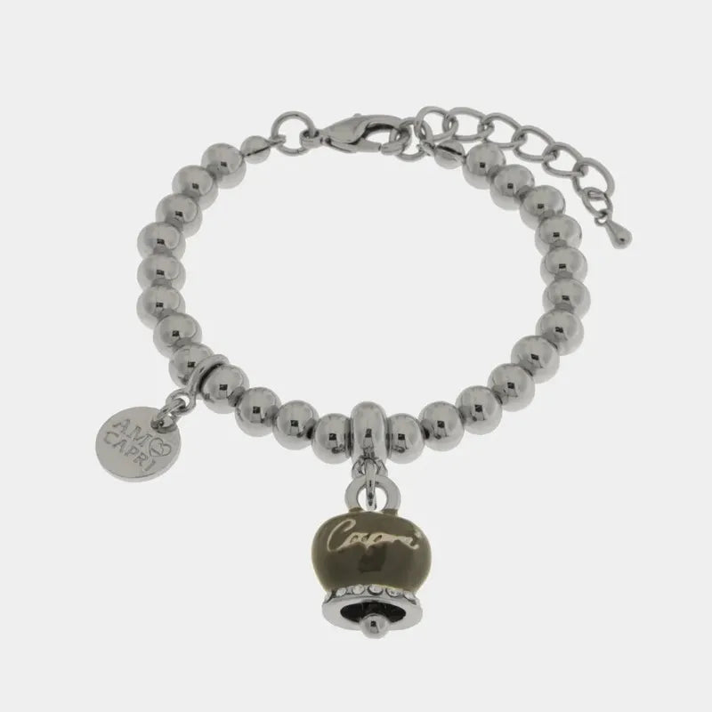 Pulsera de metal con campanilla gris con la inscripción Capri