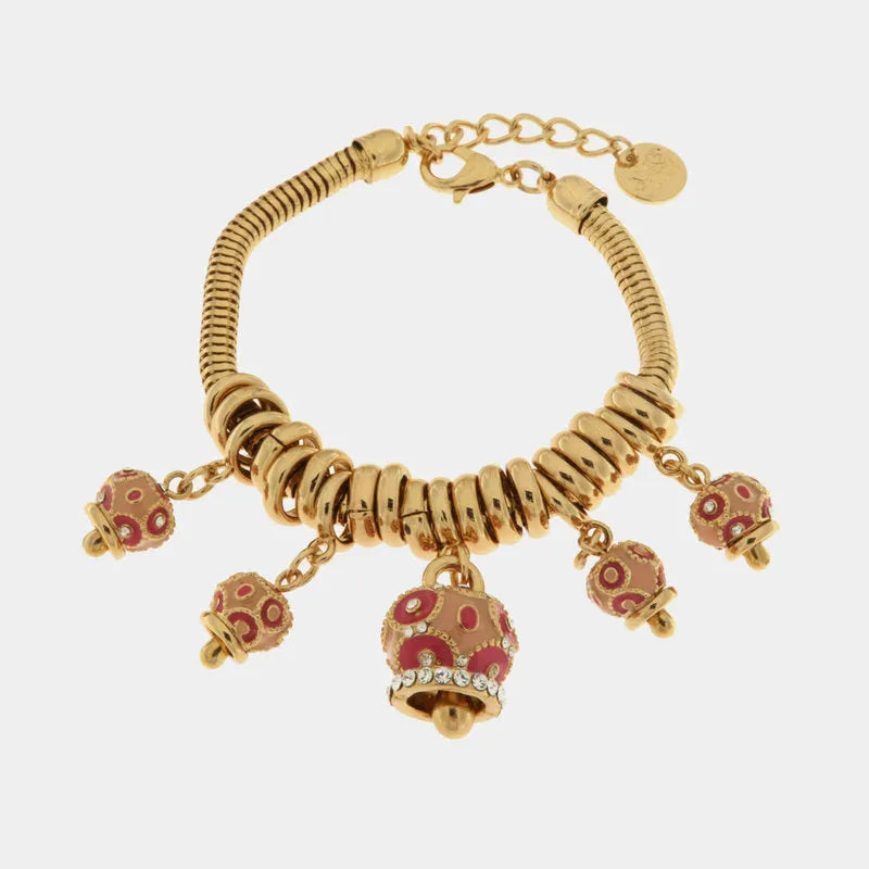 Bracciale in Metallo con campanelle colorate in smalto rosa e cristalli bianchi
