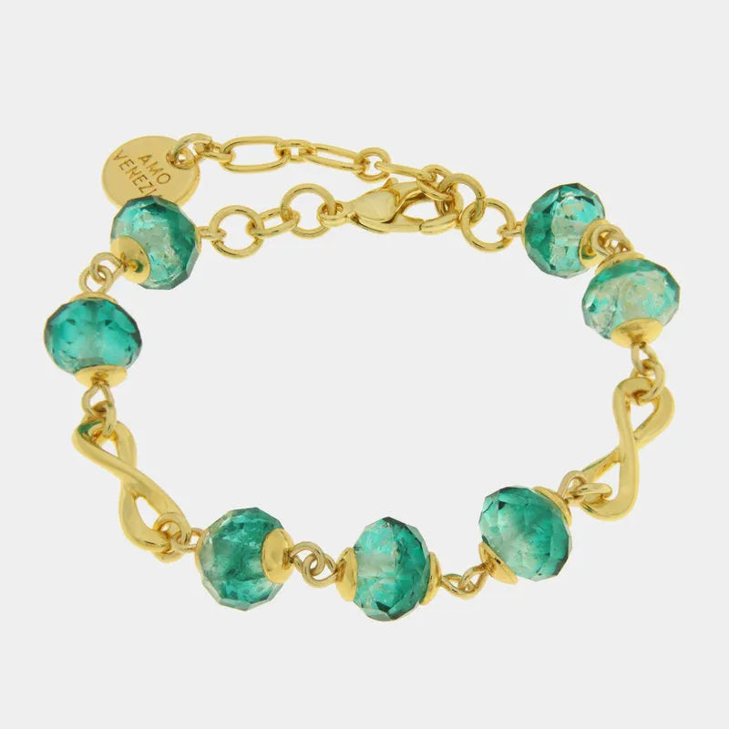 Bracciale in Metallo con cristalli verdi ispirati al vetro di Murano