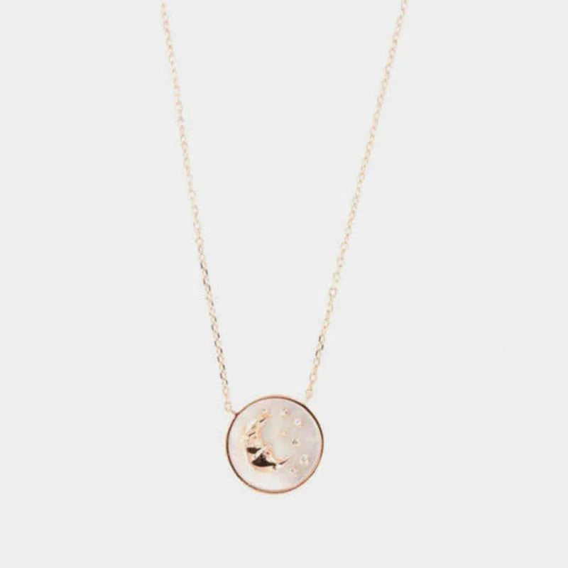 Collana in Argento 925 pendente con base madre perla e luna con stelle impreziosita da zirconi bianchi