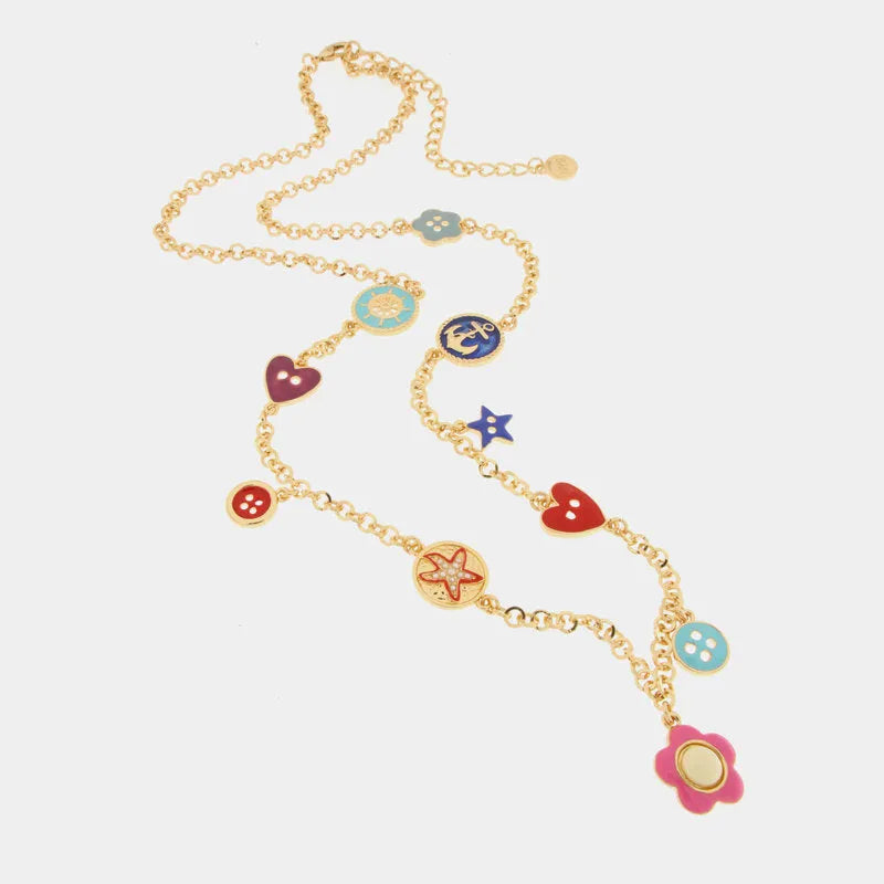 Collana in Metallo con ciondoli marini e bottoni colorati