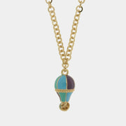 Collana in Metallo con mongolfiera placcata oro verde blu e azzurro
