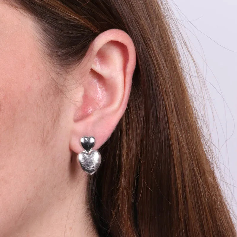 Orecchini in Argento 925 con doppio cuore graffiato e lucido