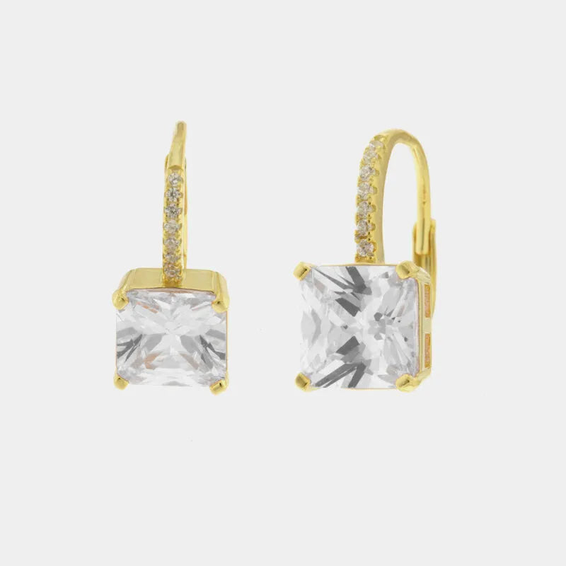 Orecchini in Argento 925 con zircone quadrato trasparente