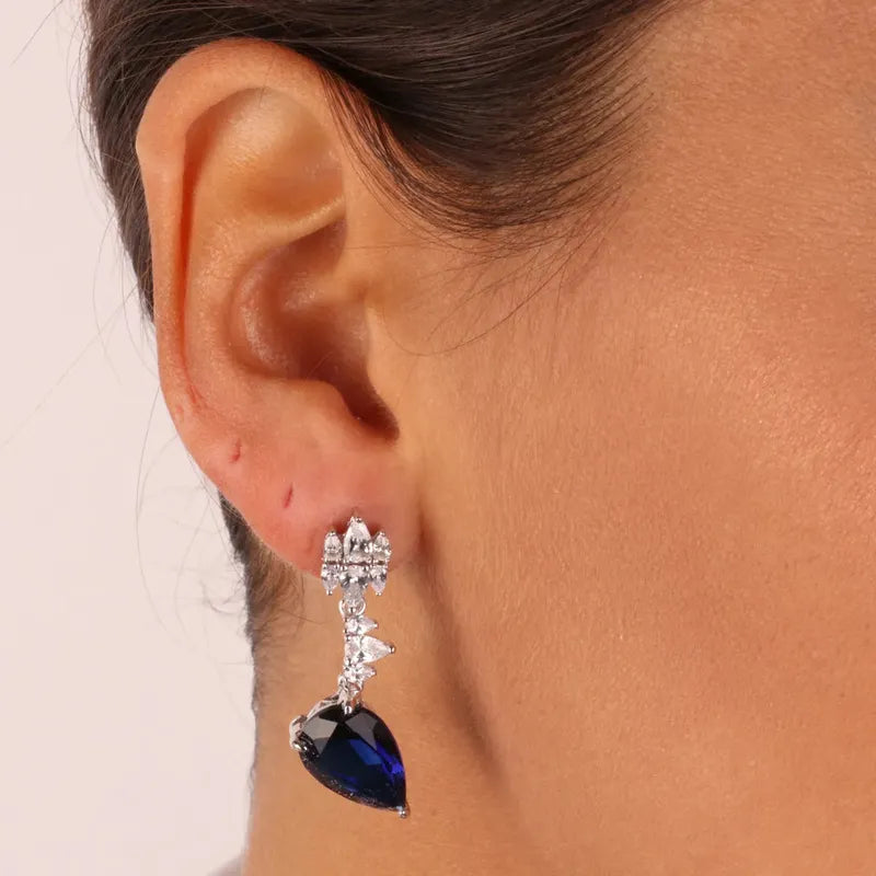 Pendientes de Plata 925 adornados con circonitas blancas y circonita azul colgante en forma de gota