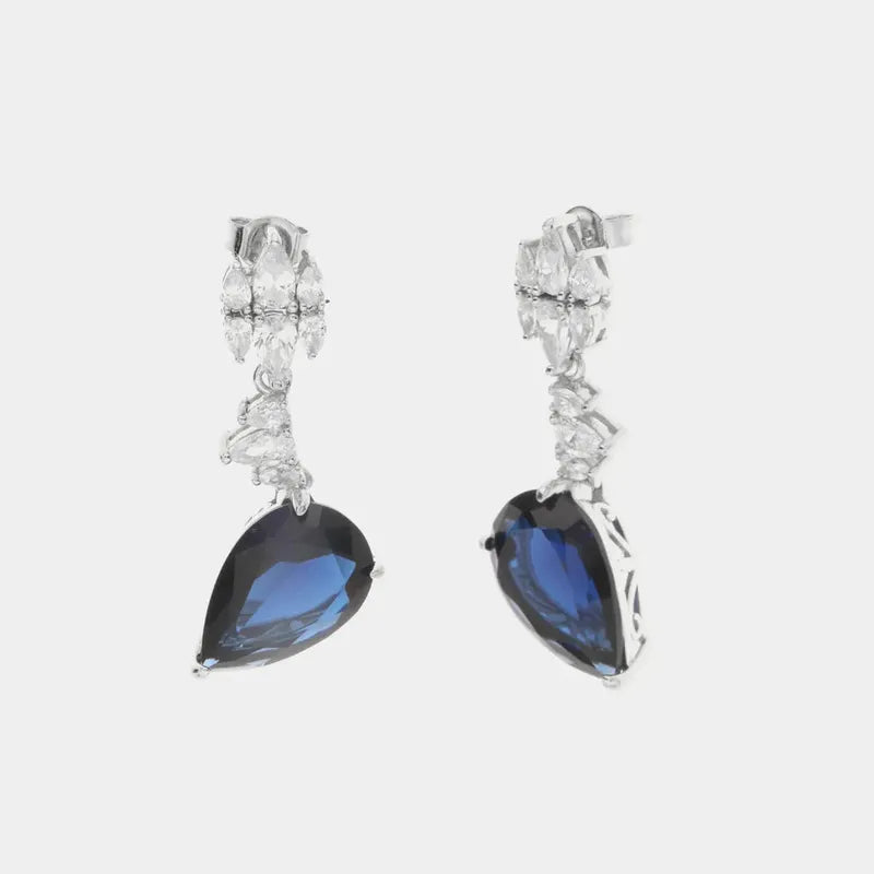 Orecchini in Argento 925 impreziositi da zirconi bianchi con zircone blu pendente a goccia