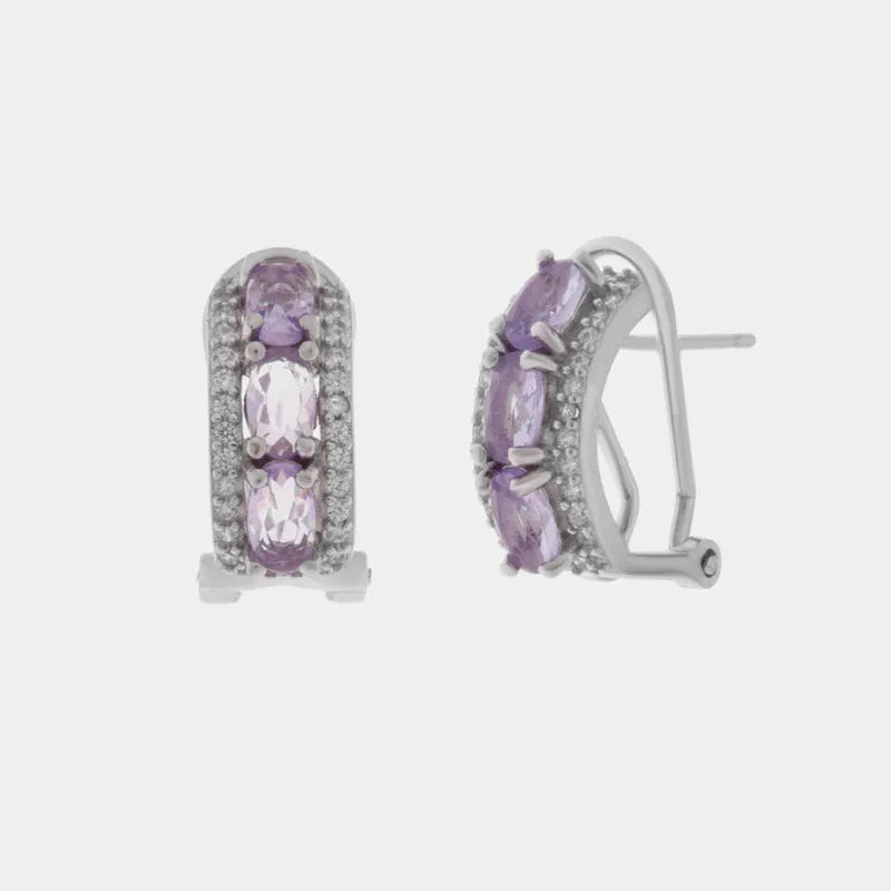 Orecchini in Argento 925 semicerchio con zirconi viola