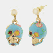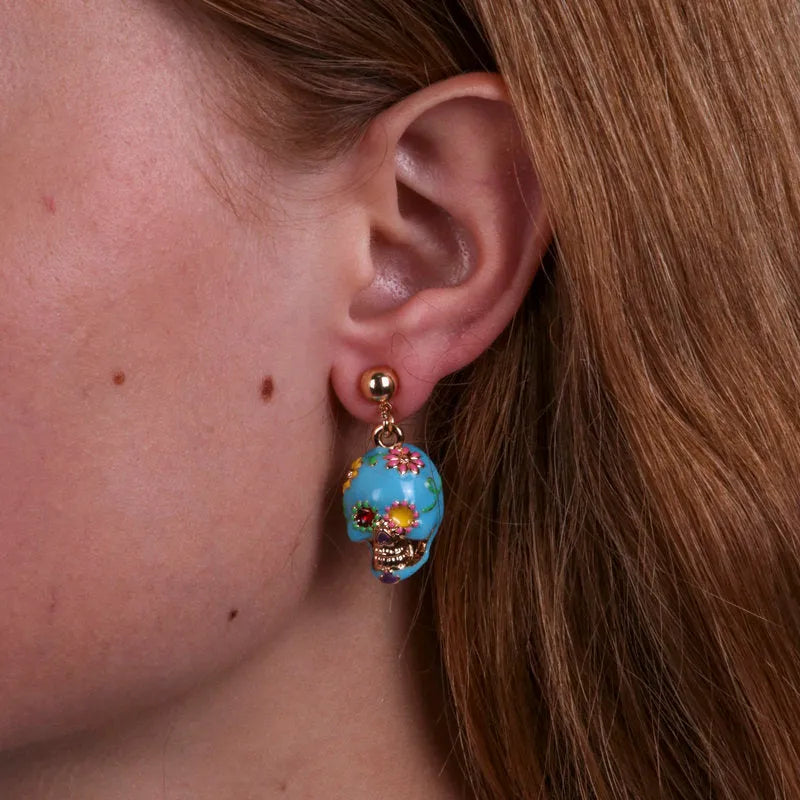 Orecchini in Metallo con capuzzella azzurra impreziosita da fiori colorati