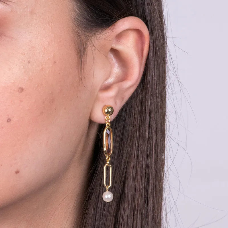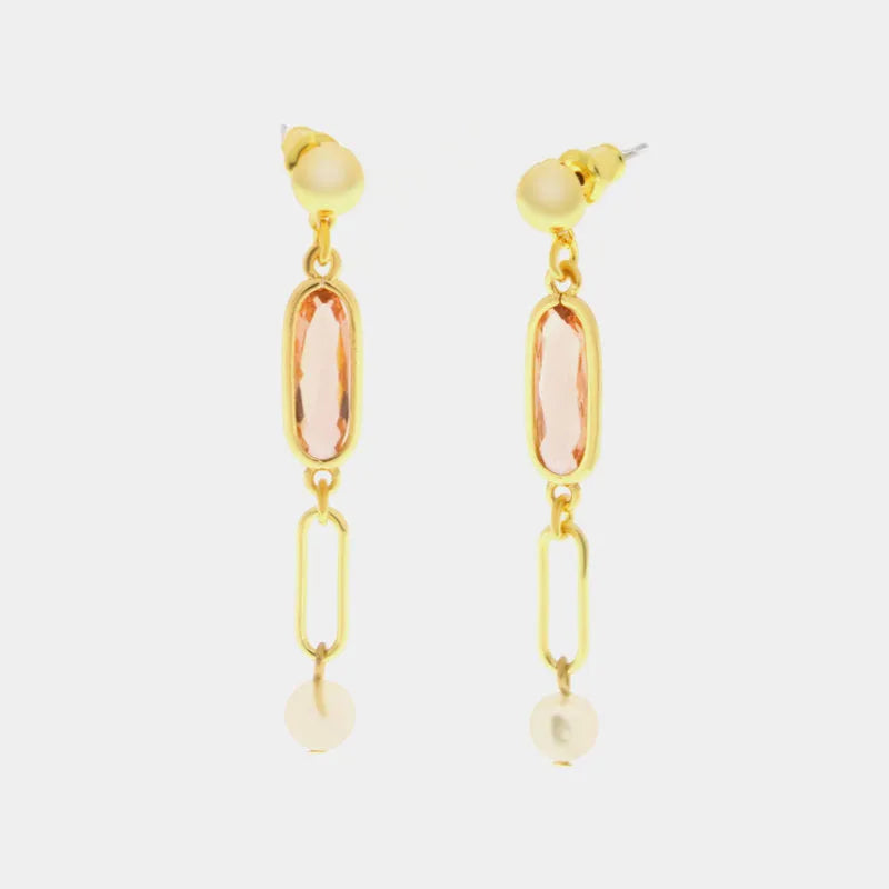 Orecchini in Metallo con cristalli rosa e perlina bianca