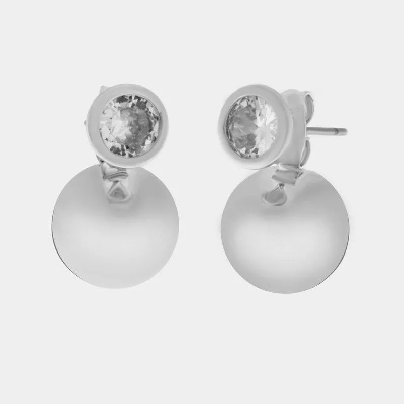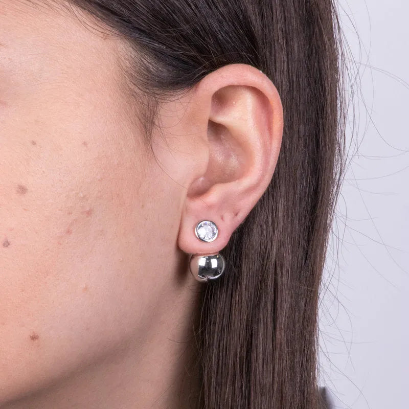 Orecchini in Metallo con sfera liscia e cristallo a lobo