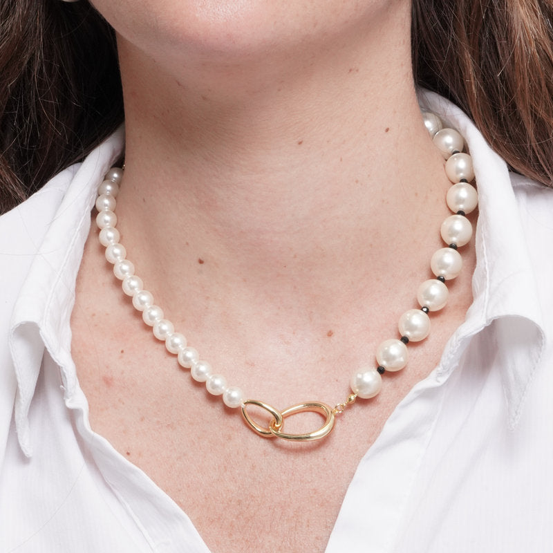 Collana in Metallo cerchi intrecciati con perle