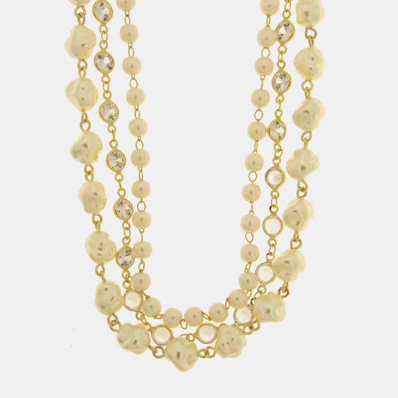 Collana in Metallo multifilo con perle e cristalli