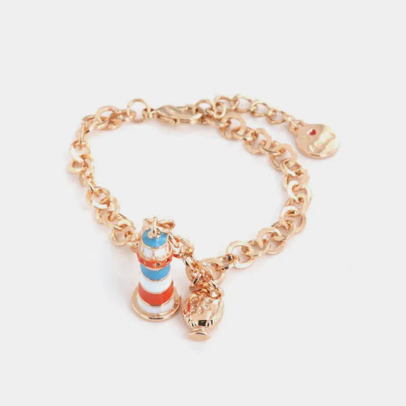 Bracciale in Metallo con ciondolo faro pendente, impreziosito da smalti colorati e piccolo pumo a lato