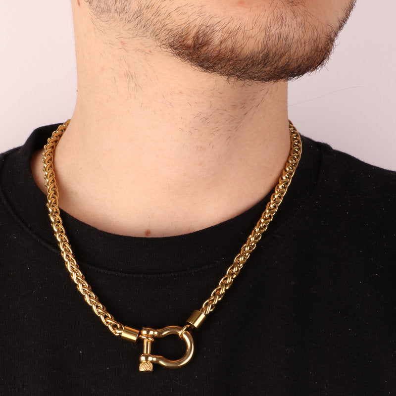 Collana in Acciaio intrecci di catene con chiusura a vite