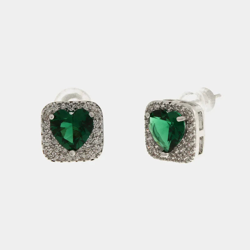 Orecchini in Metallo donna a lobo con cristalli luminosi e pietra centrale verde smeraldo a forma di cuore,