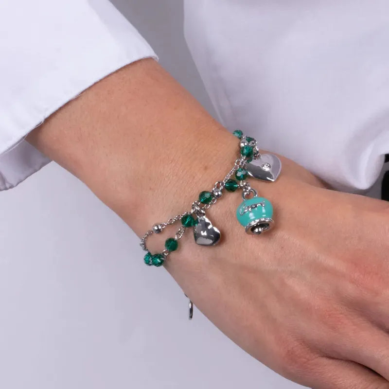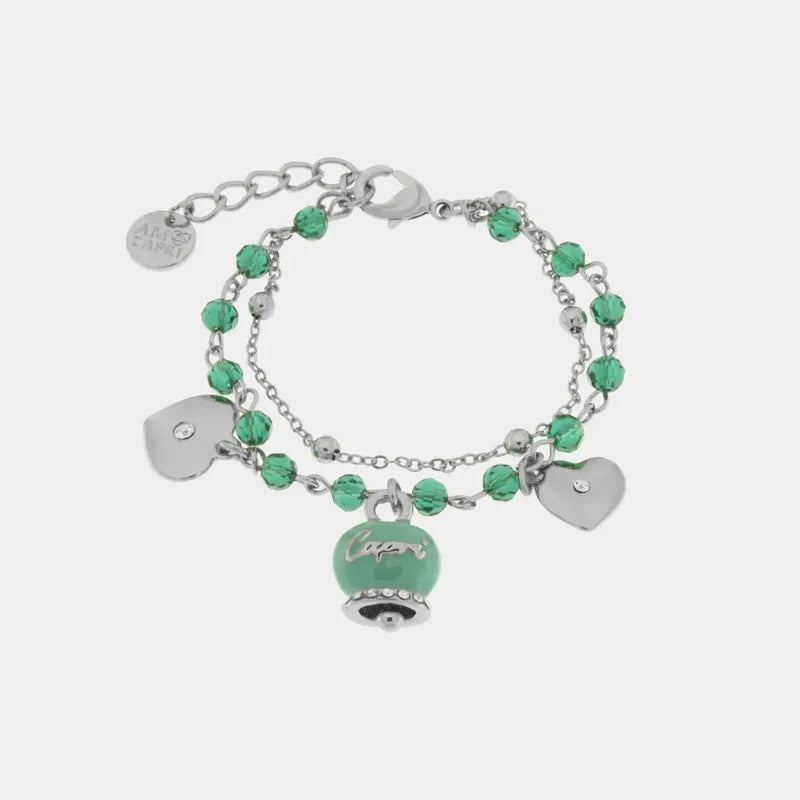Bracciale in Metallo multifilo con campanella e pietre verdi