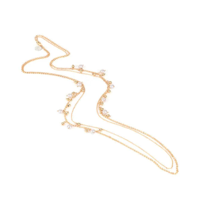 Collana in Metallo a catena lunga multifili, impreziosita da sfere effetto perle pendenti