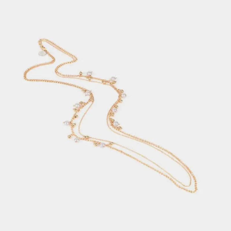 Collier en métal à chaîne longue multifil, rehaussé de sphères effet perles pendantes.