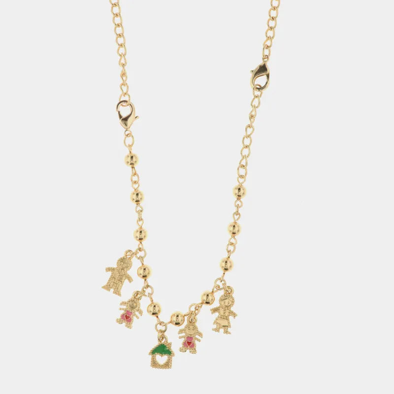Collana in Metallo con pendenti a forma di casa con cuore, papà, bimba, mamma e bimba
