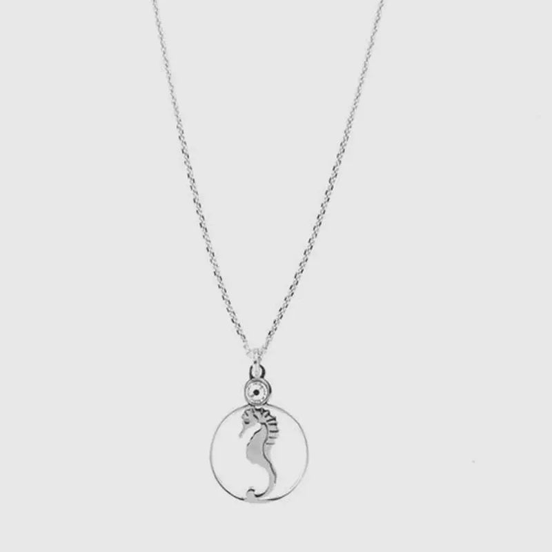 Collier en Argent 925 avec pendentif en forme de hippocampe et cristaux