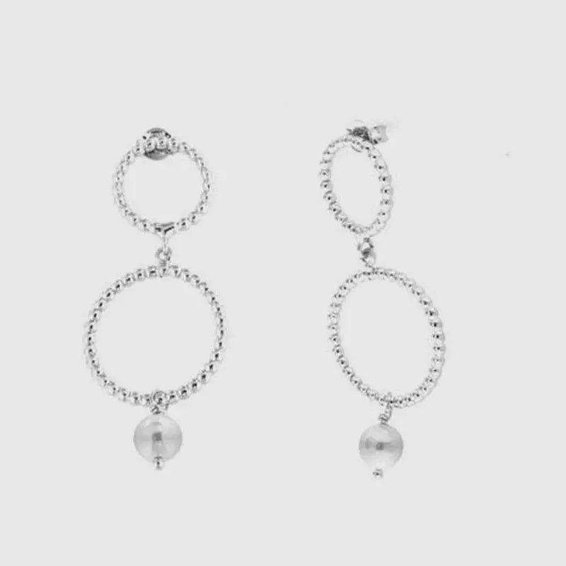 Orecchini in Argento 925 con cerchi puntellati pendenti e perla finale