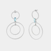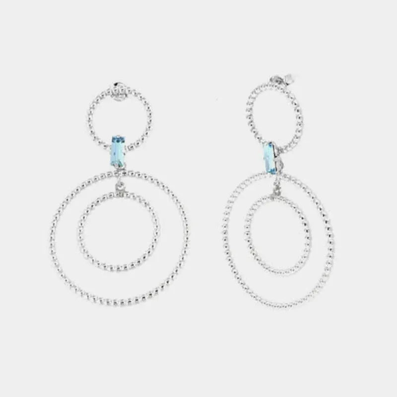 Orecchini in Argento 925 con doppi cerchi puntellati e cristallo azzurro centrale